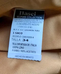 Blazer Basel. Blazer ocre 100%linoSe lava en secoMedidas: Axila a axila 51cm, manga 62cm, largo 57cm