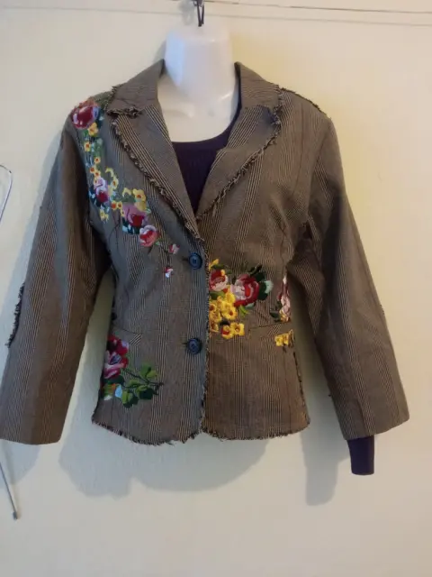 Blazer bordado. Hermoso blazer tipo gabardina bordado a manoNuevo Talla M Con forro