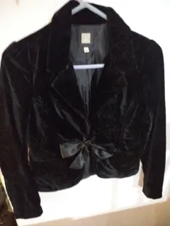 Blazer bordado de Terciopelo. Blazer tipo saco color negro bordado mismo tono se cierra con listón talla XS. Marca Old Navy New York. En perfecto Estado