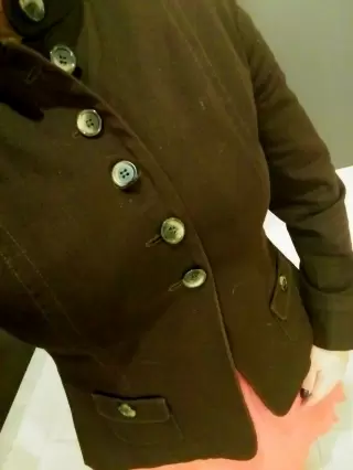 Blazer café Maringo. Que tal este blazer con un lindo corte en cuello MAO, lo que lo hace único y original, tanto con ropa de vestir como con jeans da un toque excepcional.El corte trasero hace una muy buena forma al cuerpo.Si conoces la marca sabes que es de alta calidad, en forros, telas (no se deslavan) y botones, así como sus diseños que no son los típicos y si no la conoces, te aseguro no te arrepentirásT-30