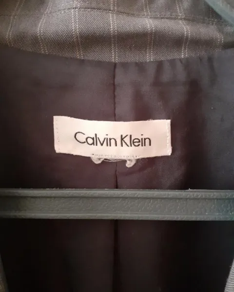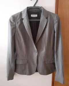 Blazer CALVIN KLEIN. Lindo blazer, color gris a rayas. Talla S. Medidas: hombro- hombro 36 cm, axila-axila 42 cm y largo 57 cm. Está en buen estado.