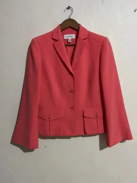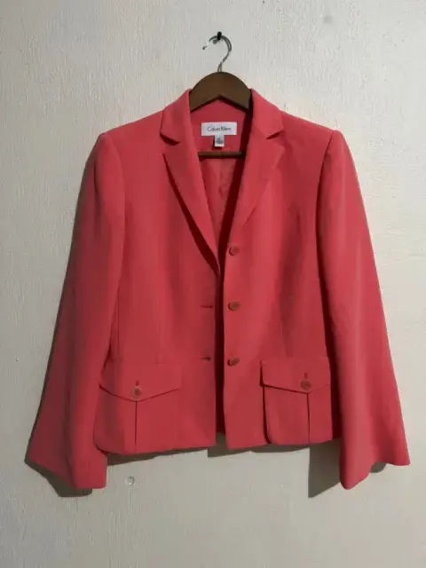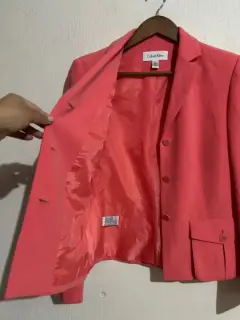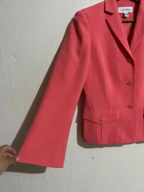 Blazer Calvin klein. Blazer color durazno, en buen estado, con medidas 38 de hombros, largo 54 cm, 46 de axila, lo recomiendo para talla M, porque viene amplio para s