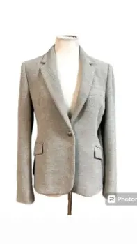 Blazer caspeado gris. Blazer Zara caspeado gris con blanco con botón plateado en el frente y botones plateados en las mangas tela súper gruesa, corte v