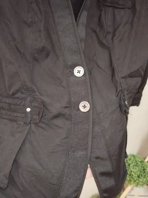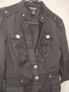Blazer corto con destellos súper bonito elegante muy poquito a un solo botón manda a tres cuartos súper súper bonito forro y su botón totalmente intacto sin ningún detalle.. SIN DETALLES