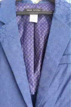 Blazer corto. Blazer corto de mangas 3/4 color azul, con textura de flore, luce bien a la figura