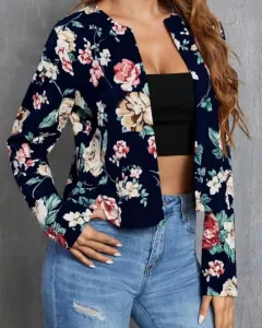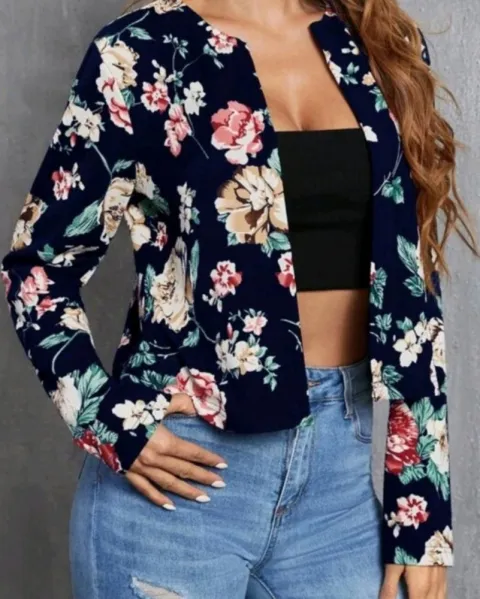 Blazer corto con estampado floral. Estilo casualEstampado floralTejido elástico ligeroMaterial poliésterTemporada primavera otoño