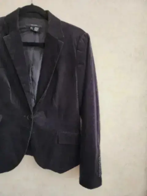 Blazer de algodon negro Zara. Blazer/Saco de algodon marca ZARA color negro, talla G, tela tipo pana y tiene forro por dentro, trae bolsillos falsos en parte de frente, se cierra con 1 botón, las mangas tienen diseño con botones, la parte de atrás trae pinzas y tiene abertura trasera.SIN NINGÚN DETALLE.✨️
