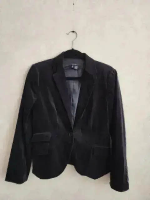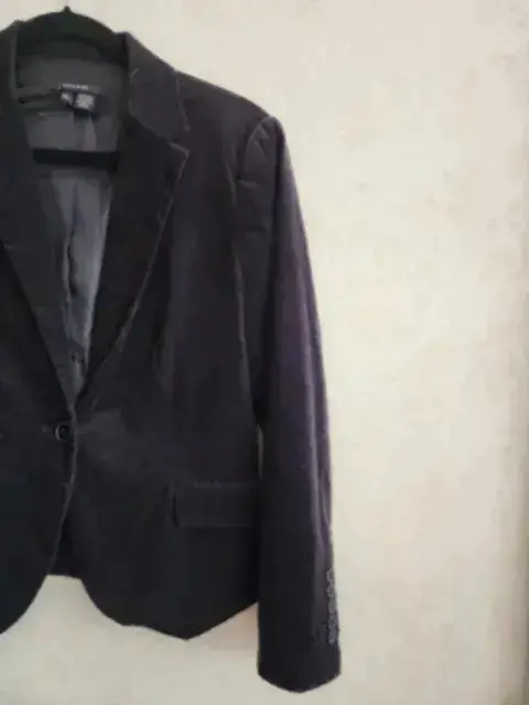 Blazer/Saco de algodon marca ZARA color negro, talla G, tela tipo pana y tiene forro por dentro, trae bolsillos falsos en parte de frente, se cierra con 1 botón, las mangas tienen diseño con botones, la parte de atrás trae pinzas y tiene abertura trasera.SIN NINGÚN DETALLE.✨️