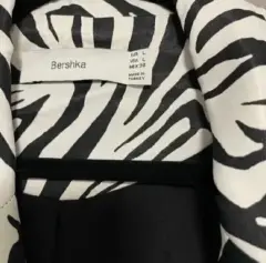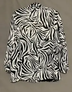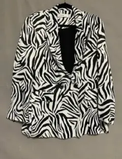 Blazer de animal print. Blazer con estampado de zebra. El blazer tiene una mancha en la espalda, se puede ver en la última foto. Se llevó a tintorería pero no se le pudo quitar. Hombro 45 cm, axila a axila 53 cm, manga 62 cm, largo 77 cm