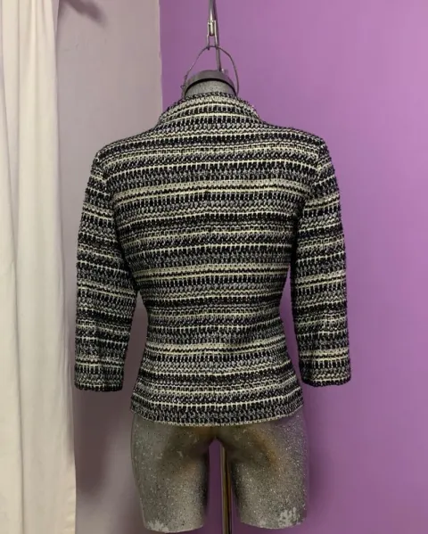 Blazer de brillos. Precioso saco corto, manga 3/4 e hilo metalizado, en cuello redondo. Es marca IVONNE, talla 8. Va bien a una chica/mediana.Sus medidas son: 58cm de largo, 46cm de manga y 46cm de axila a axila.