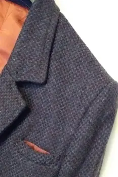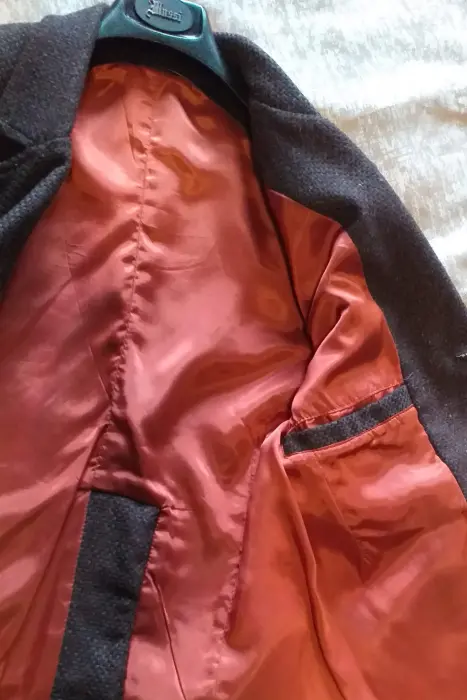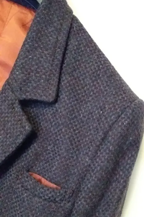 Hermozo blazer de lana, forro interior, testura suave,impecable, el color es como cafe, tiene un entrabado de azul y marron, se parecia en ultima foto