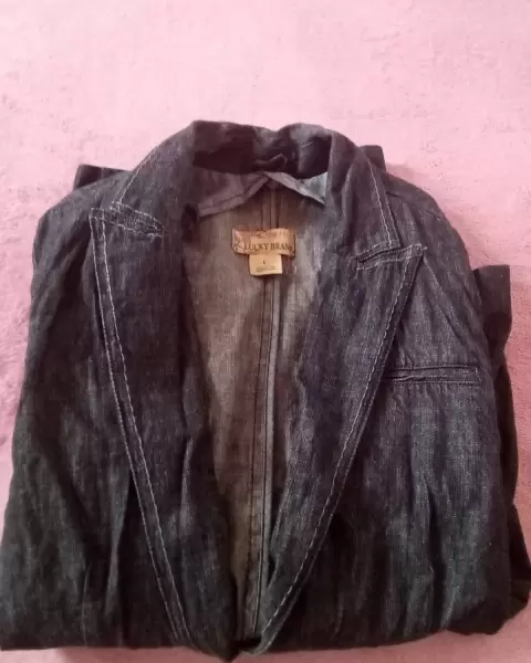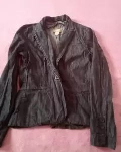 Hermoso blazer azul Marino de mezclilla muy elegante luce con todo tipo de prenda muy muy bonito no aprieta es stretch