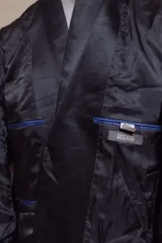 Saco muy elegante de ESMOKIN. TALLA 38 R (REGULAR)....Es de marca Americana KENNETH COLE REACTION. Es tipo esmokin con toques satinados. La tela es lana pura y esta en excelentes condiciones. Cero detalles. Color negro liso. Se aprecia perfectamente en las fotos. Revise mis otros anuncios. Cuento con gran variedad de ropa casual, vestible y deportiva.