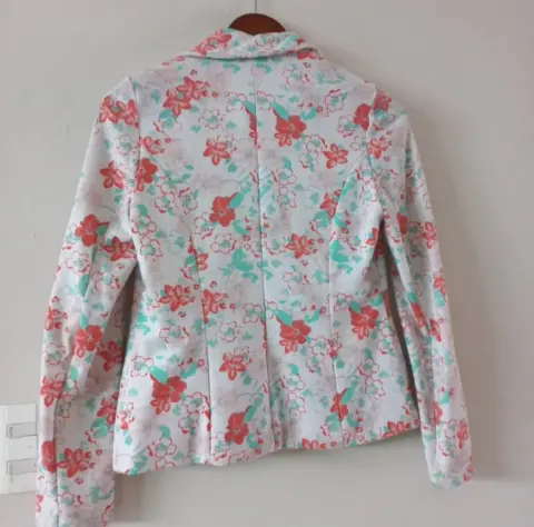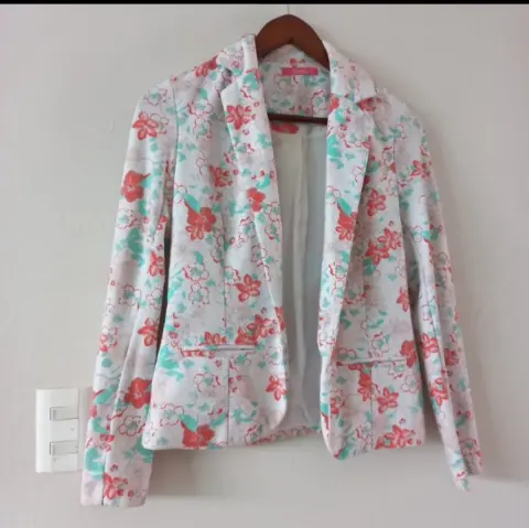 Blazer floreado. Hermoso blazer blanco con flores, talla M, no tiene ningún detalle.