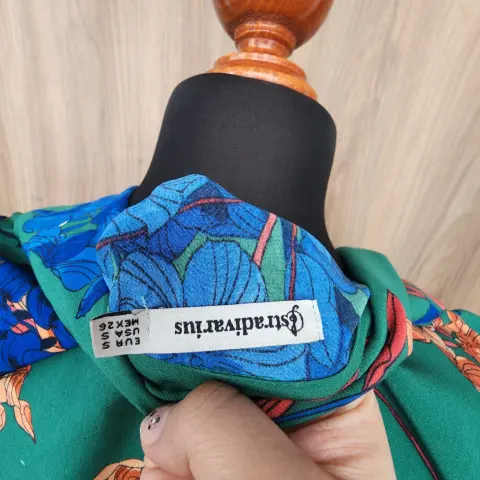 Blazer floreado STRADIVARIUS. Hermoso blazer color verde esmeralda, las flores vienen en tonalidad azul,amarilla y roja.La tela es fresca y se encuentra en excelente estado.
