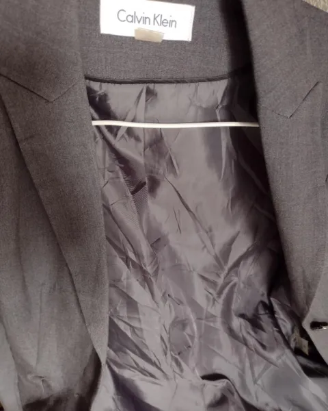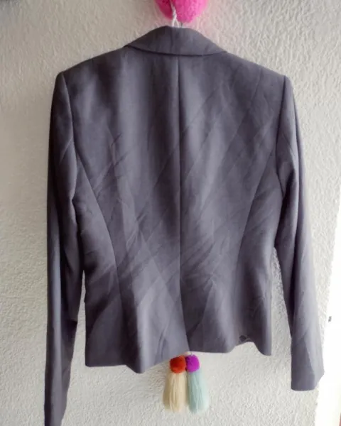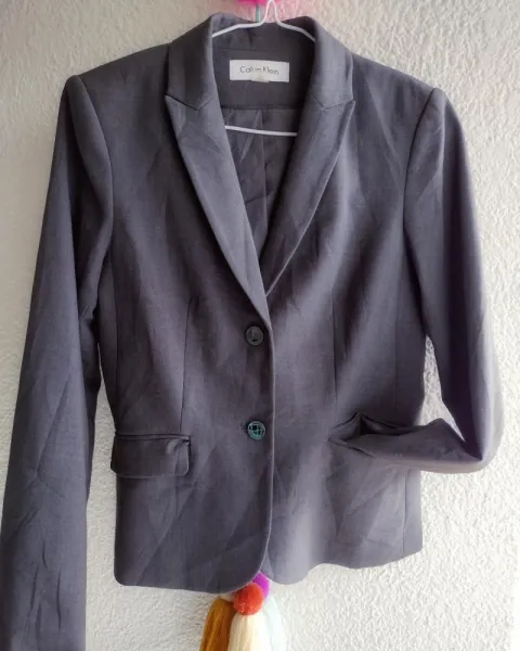 Blazer gris Calvin Klein. Una sola puesta, impecable por dentro y por fuera, solo necesita plancharse para re estrenarlo. Marca original, talla chica, botones de metal grabados.