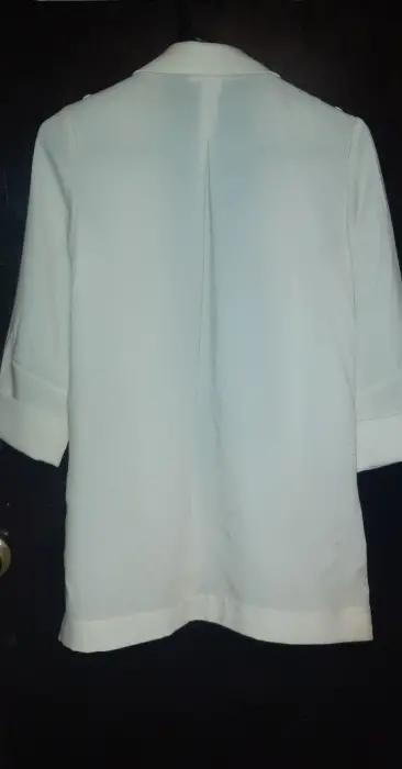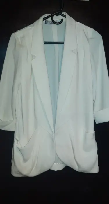 Blazer ligero, sin forro, manga 3/4 talla M, detalle de pliegues en bolsas.