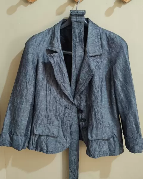 Hermoso blazer color gris en excelente condiciones no tiene ningún detalle... INCLUYE cinto 🤍