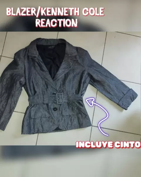 BLAZER KENNETH COLE REACTION. Hermoso blazer color gris en excelente condiciones no tiene ningún detalle... INCLUYE cinto 🤍