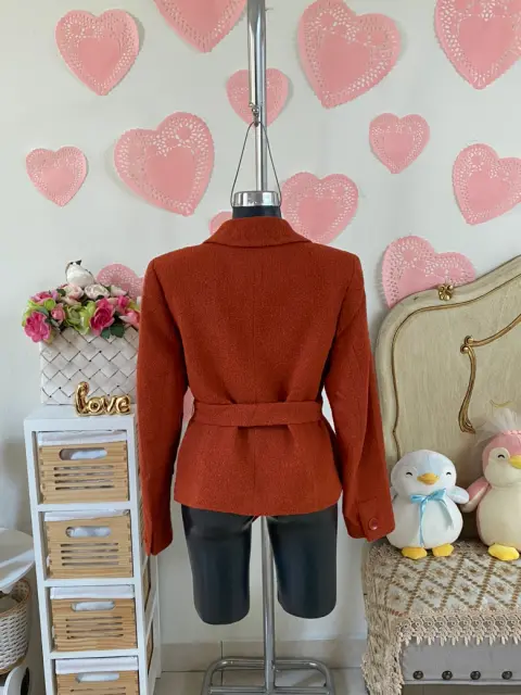 BLAZER NARANJA. Precioso & como nuevo. Abrigo/blazer naranja texturizado grueso. Forro suavecito. Cinta para ajustar en cintura & marcar súper bien tu silueta. Bolsas laterales funcionales ✅. Talla M. 🧡🔢ꪑꫀᦔιᦔꪖડ:Hombro a hombro 40 cmAxila a axila 49 cmCintura 45 cmLargo 58 cm.♻️ 92% lana, 8% nylon. Forro interior 100% poliéster♻️
