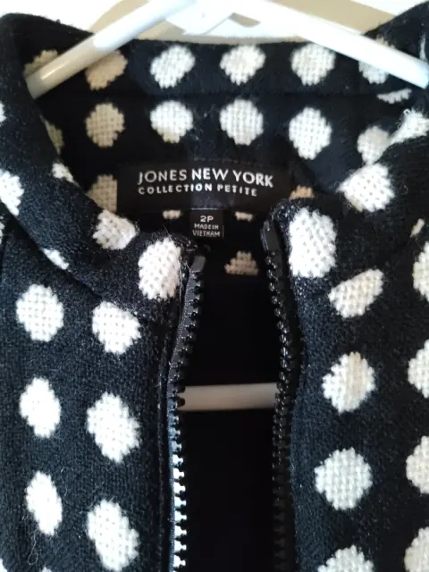 Blazer negro con puntos blancos, talla 2 P, blazer corto, calientito marca Jones new York