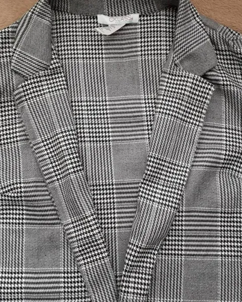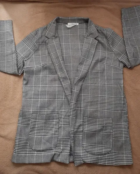 Blazer negro con blanco a cuadros, puede quedar oversize y esta precioso