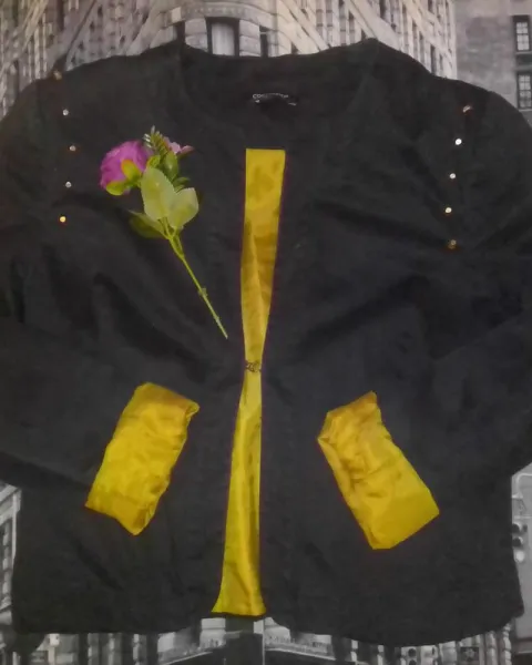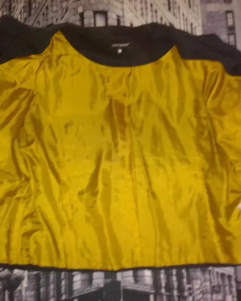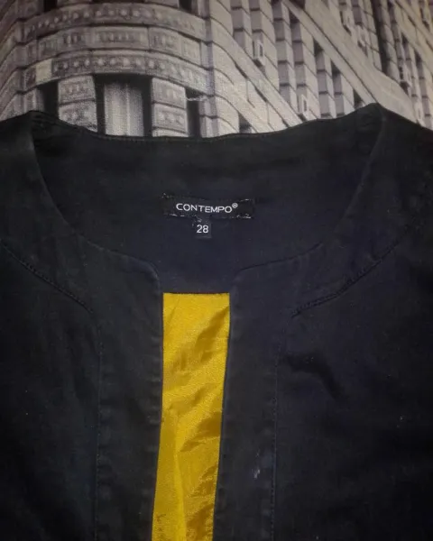 Hermoso Blazer Negro con estoperoles en la parte de las hombros , talla 28 M, marca Contempo , cuenta con forro amarillo que ayuda a resaltar aun mas el saco , unico detalle por el uso le falta un poco de color