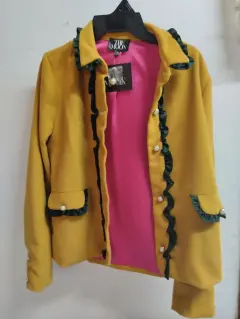 Blazer color mustard con forro fiusha muy elegante, con detalles y botones hermosos talla S nuevo con etiqueta marca THE MOON
