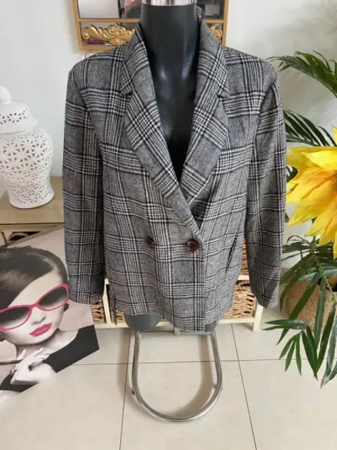 BLAZER NYC PLAID. 🖤MISMO MODELO DE LAS FOTOS🖤•COMO NUEVO• Aun trae su botón de repuesto. Blazer cuadros. Bolsas funcionales.Colores: gris con negro.Esta hermoso & sería una perfecta opción si eres amantes de los blazers😍.★·.·´𝑴𝒆𝒅𝒊𝒅𝒂𝒔`·.·★Hombro a hombro 42 cmAxila a axila 53 cmLargo delantero 59 cmLargo trasero 67 cm.🧵 90% poliéster, 10% lana 🪡