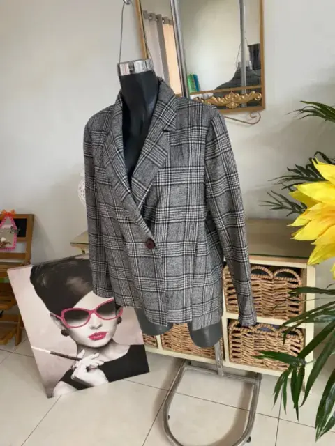 🖤MISMO MODELO DE LAS FOTOS🖤•COMO NUEVO• Aun trae su botón de repuesto. Blazer cuadros. Bolsas funcionales.Colores: gris con negro.Esta hermoso & sería una perfecta opción si eres amantes de los blazers😍.★·.·´𝑴𝒆𝒅𝒊𝒅𝒂𝒔`·.·★Hombro a hombro 42 cmAxila a axila 53 cmLargo delantero 59 cmLargo trasero 67 cm.🧵 90% poliéster, 10% lana 🪡