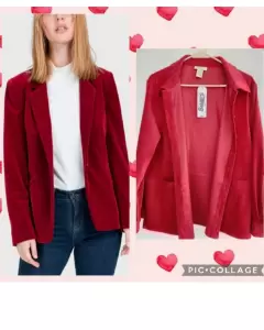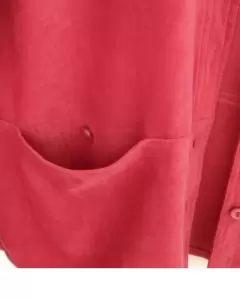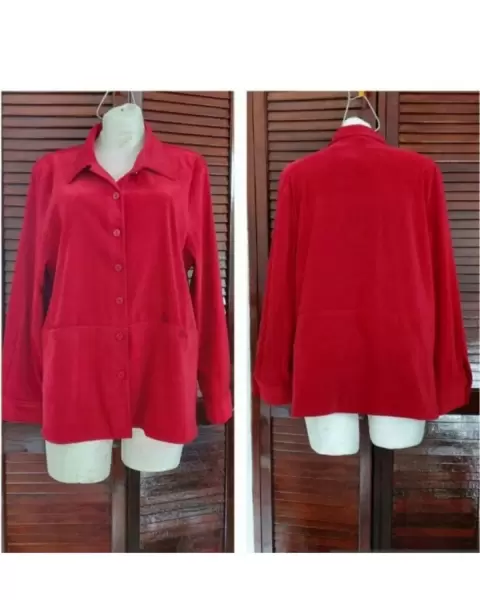 Blazer rojo terciopelado y elegante. Elegante y bello, tela exterior terciopelada, tono rojo. Lucirás hermosa, elegante y formal. Tiene dos pequeñas bolsas al frente. Tela 97% poliéster. Mide de axila a axila: 56 cm, largo: 68 cm.