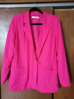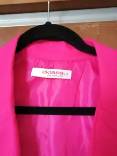 Bonito y combinable blazer rosa barbiTalla G marca cklassSueve al tacto y buena calidad.Hombros 42 cmLargo 76 cmManga 63 cm