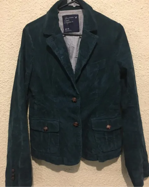 Blazer verde jade american eagle m. Bonito blazer american eagle color verde jade talla m de pana calientito en perfectas condiciones 👀 ojo de regalo pashmina