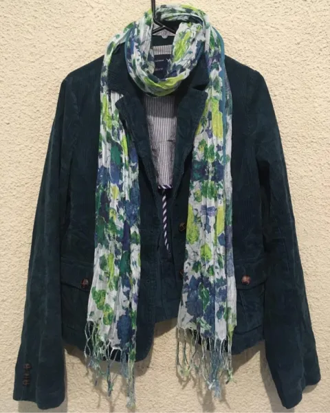 Bonito blazer american eagle color verde jade talla m de pana calientito en perfectas condiciones 👀 ojo de regalo pashmina