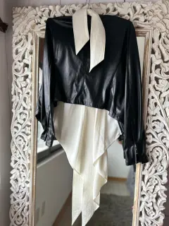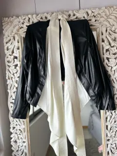 Blazer vinipiel. Blazer vinipiel con tiras de vestir blancas desmontables