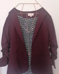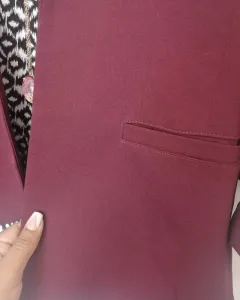 Blazer color vinoTela fresca y con animal print blanco y negro en el interiorTalla xs