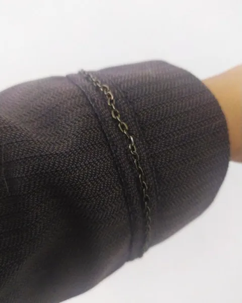 Saco cuello redondo, tres botones frontales, decorado con cadenas y botones vintageAncho espalda 41Largo de manga desde hombro 59Largo total desde hombro 74Puño 14
