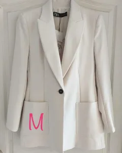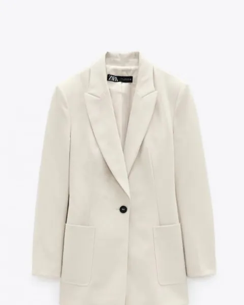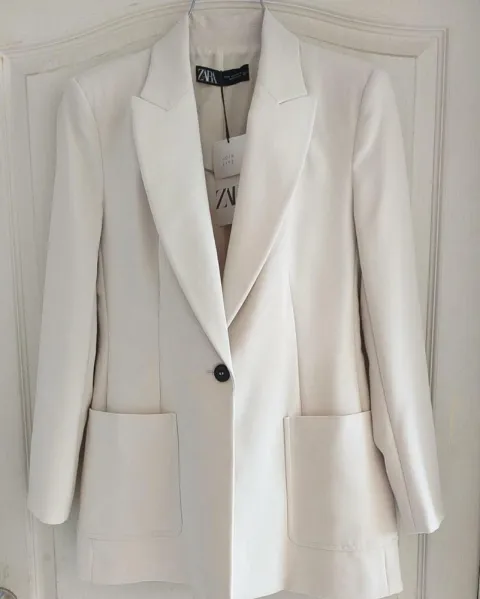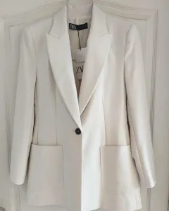 Blazer Zara, nuevo con etiqueta, talla M, color crudo con botones negros, hermoso!