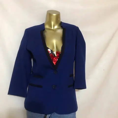 Blazzer azul marino con negro. Bonito Blazzer azul eléctrico con negro mangas tres cuartos nievo con etiqueta trae su botón