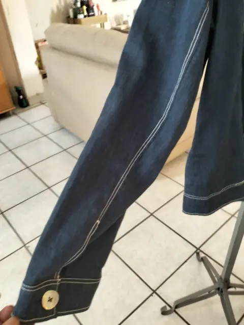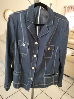 BLEIZER CASUAL DE MEZCLILLA. Bonito BLEIZER casual de mezclilla con hombreras botones al frente,largo a la cadera bolsas al frente muy fresco