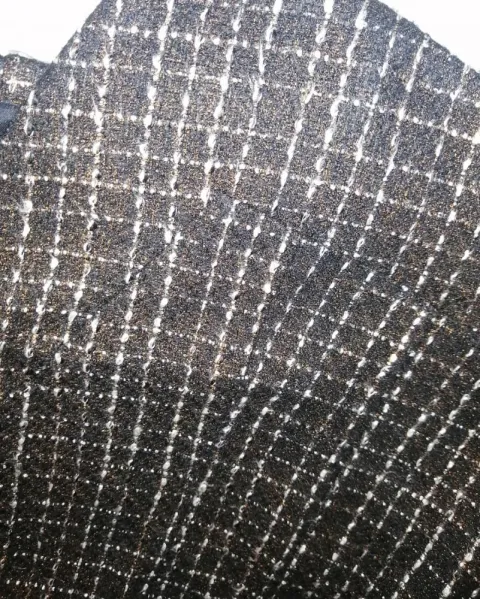 Bonito bleizer corto con botones al frente estilo vintage pequeña avertura en la espalda trae forro satinado diseño cuadrito cafes y traun un poko de toke de brillo como ocre
