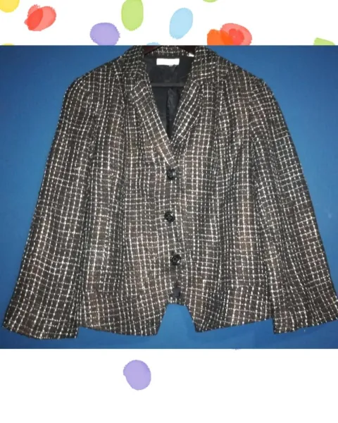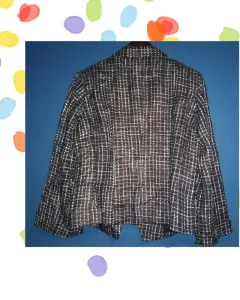 BLEIZER VINTAGE DE CUADROS!!!. Bonito bleizer corto con botones al frente estilo vintage pequeña avertura en la espalda trae forro satinado diseño cuadrito cafes y traun un poko de toke de brillo como ocre
