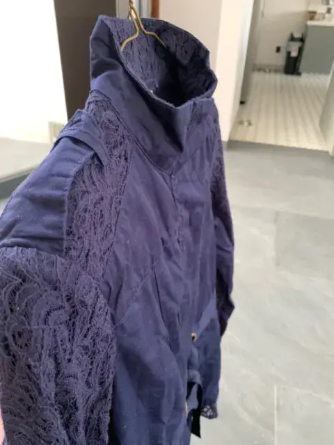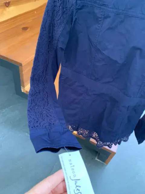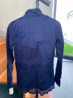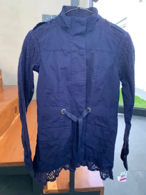 Bonita chamarra de entretiempo con encaje en mangas. Talla extra chica. Con etiqueta listas para usarse. Queda con todo.