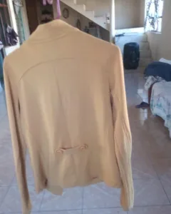 Bonito saco cafe. Es un bonito saco entre color café claro y naranja, se ve super lindo, dice talla M, pero también queda bien a una S, único detalle de uso...