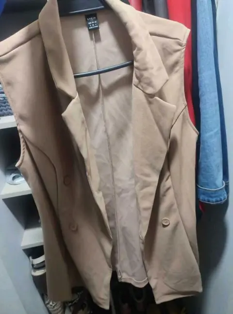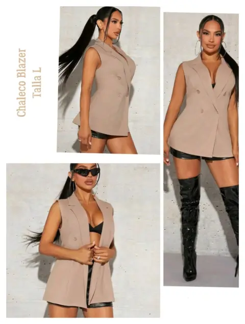 Bonito chaleco tipo blazer. Con botones. Muy elegante acomoda muy padre. Es talla mediana pero queda a grande