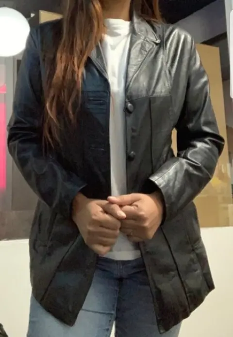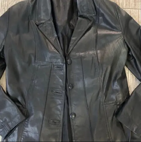 Hermosa chaqueta de piel 100%, con bolsas de buen tamaño, pinzas traseras que dan una hermosa forma.