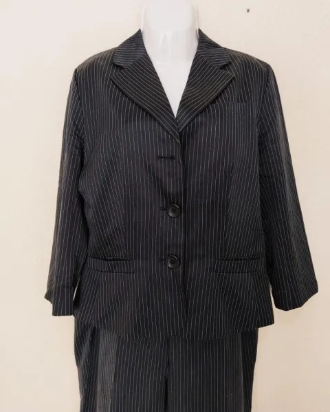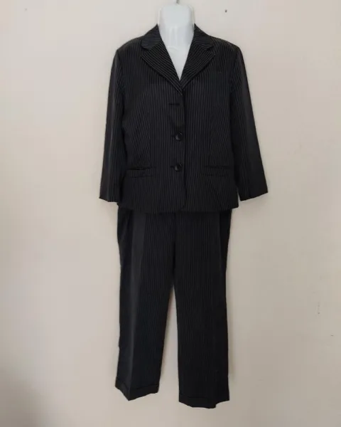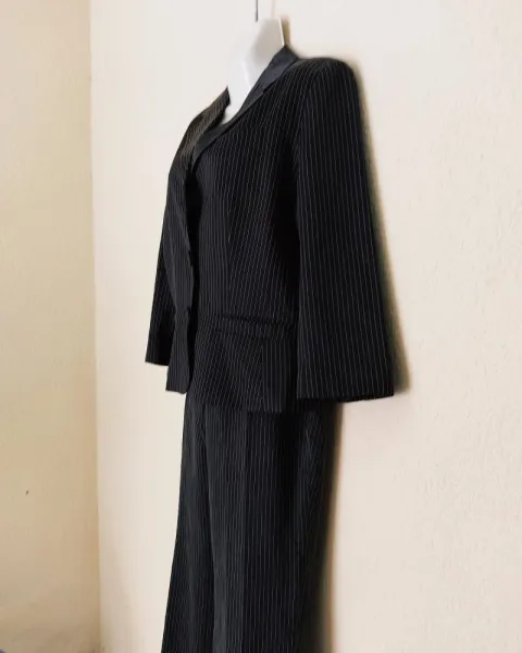 Conjunto BLAIZER Y PANTALÓN Banana Republic. Color negro con rayitas imperceptibles, que le dan un toque lindo y coqueto, Talla 12-L, medidas: pantalón cintura 47, cadera 53, Blaizer axila 50, hombro 40 y largo 63.para que chequen con las suyas. Esta superlindo, muy comodo, solo le falta un botón al blaizer pero por lo demas esta en excelente estado.