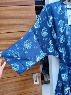 Hermoso estampado y color azul combina hermoso con jeans, tela tipo satín, manga 3/4 unitalla queda a s, m, g... hermoso con su fajillo