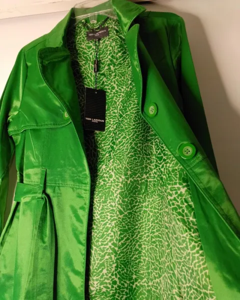 Gabardina Nueva #M Marca Ted Lapidus color verde forrada por dentro con cordon a la cintura