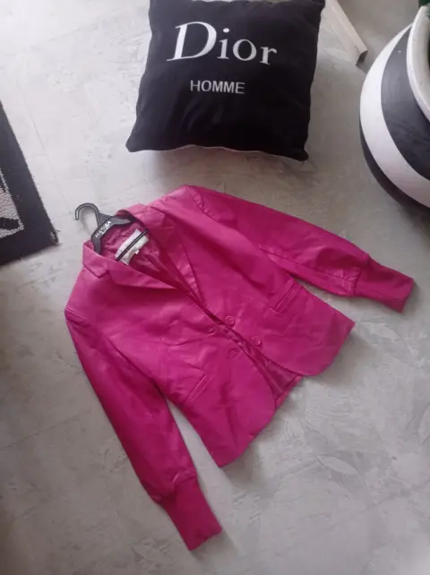 HERMOSO SACO DE VINIPIEL. HERMOSO SAQUITO COLOR FIUSHA TALLA M,TE MOLDEA EL CUERPO YA QUE VIENE ACINTURADO, PERFECTO PARA UN DIA CASUAL O DE FIESTA.